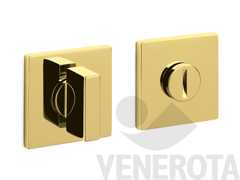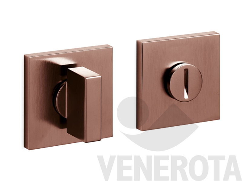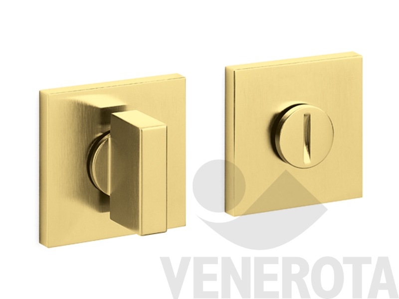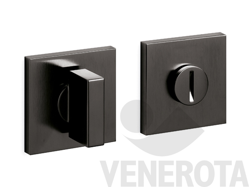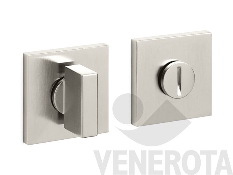 Coppia bocchette quadre Space Q Olivari in ottone con nottolino e indicatore libero/occupato, da utilizzare su porte bagno con spessore 42-47 mm.