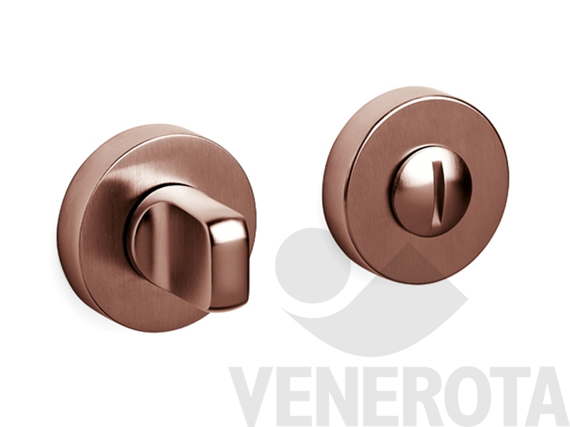 Coppia bocchette tonde CD49 BZG G Colombo Design in ottone con nottolino, da utilizzare su porte bagno con spessore 40-50 mm.