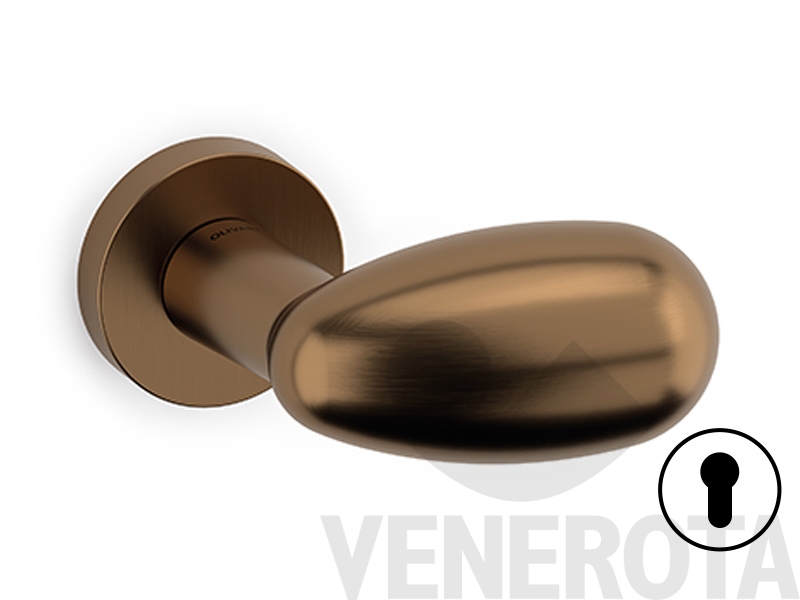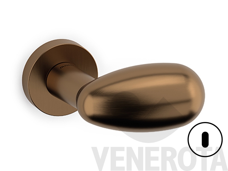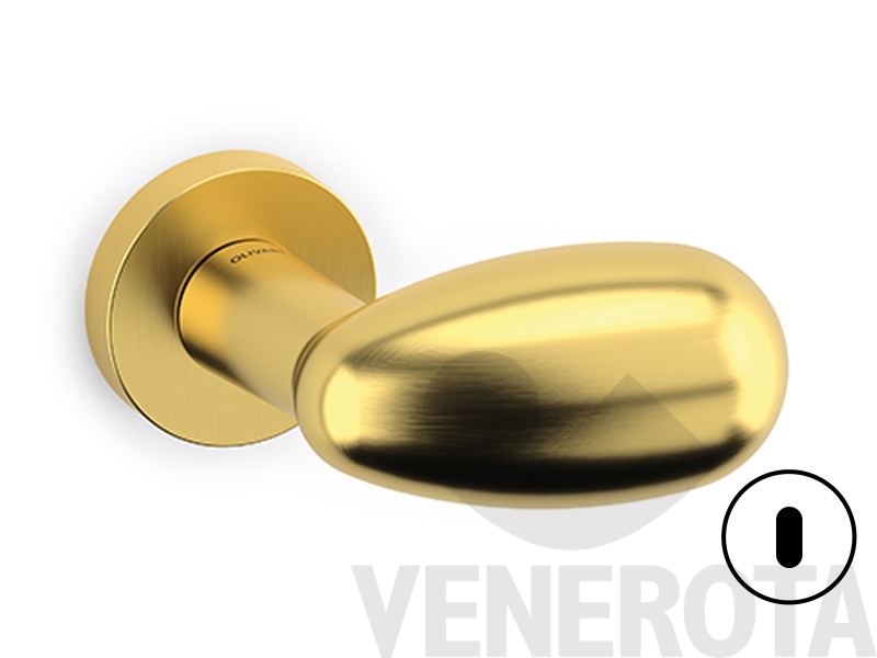 Coppia pomoli spostati Uovo Olivari con rosetta e bocchetta tonda bassa in ottone.