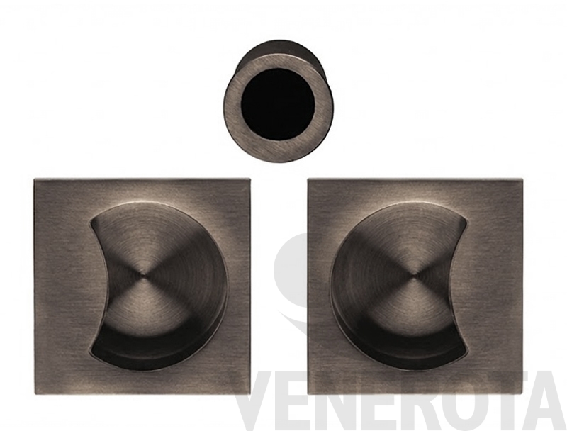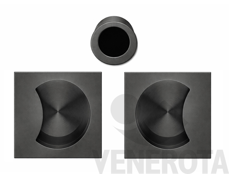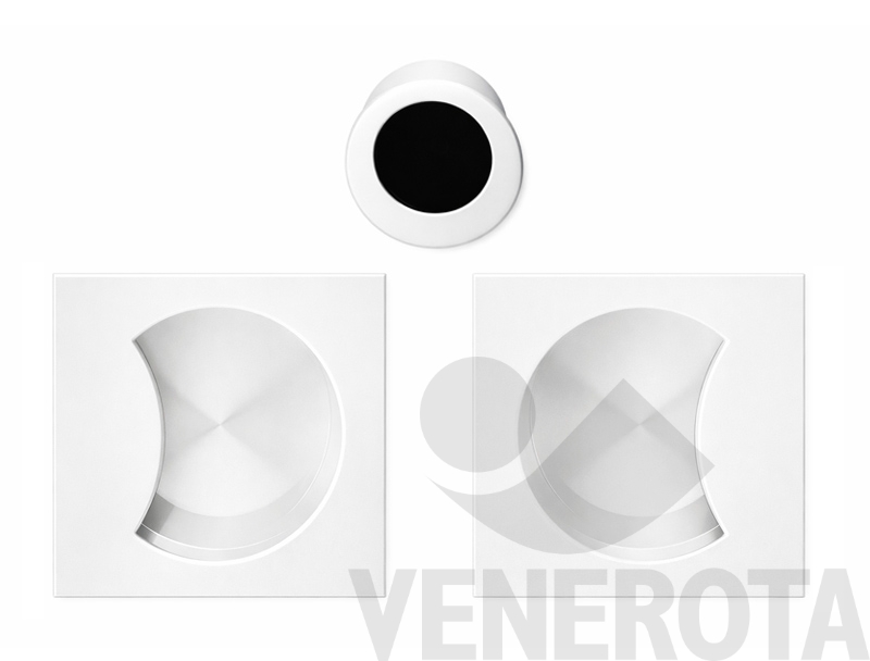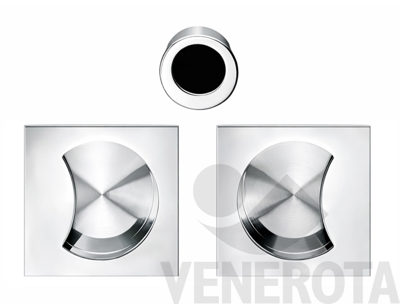 Kit cieco Open SQ ID 311 quadro per porta scorrevole Colombo Design, composto da una coppia di maniglie ad incasso e una nicchia di trascinamento.