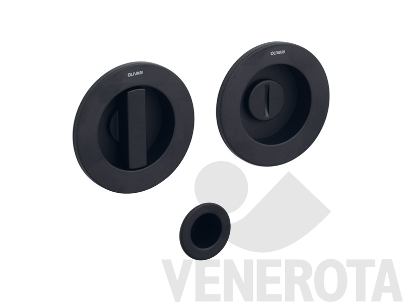 Kit porta scorrevole tondo con nottolino, serratura e contropiastra Bonaiti.