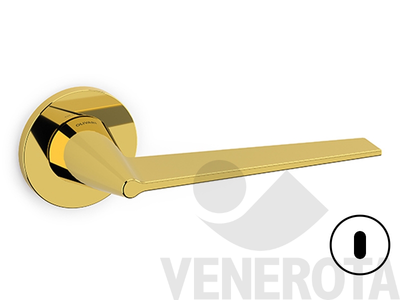 Maniglia Cono per porta Olivari con rosetta e bocchetta tonda bassa in ottone.