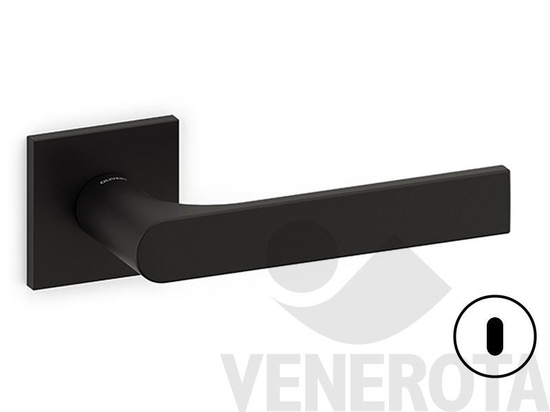 Maniglia Zelda per porta Colombo Design con rosetta e bocchetta quadra in ottone.