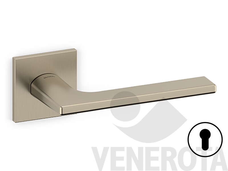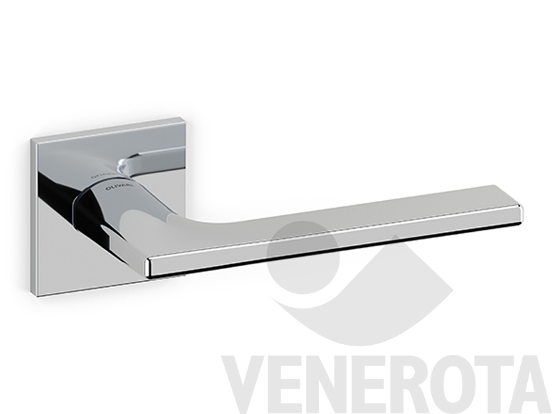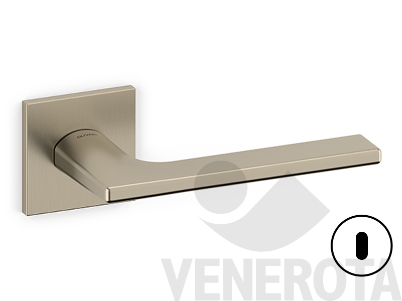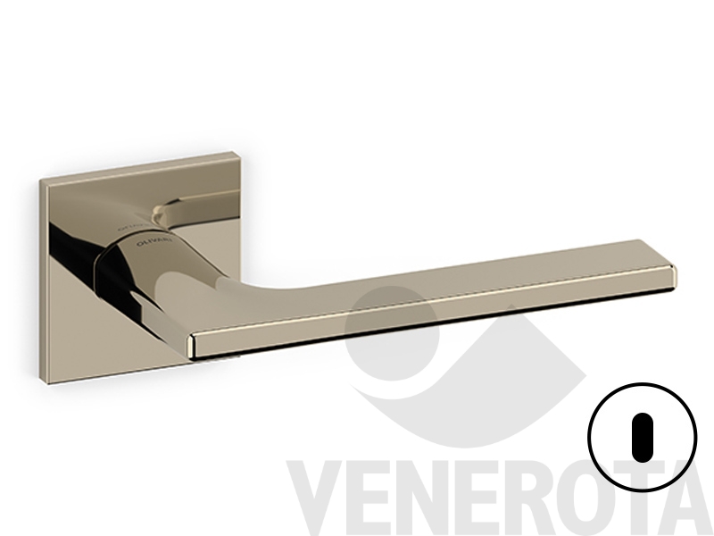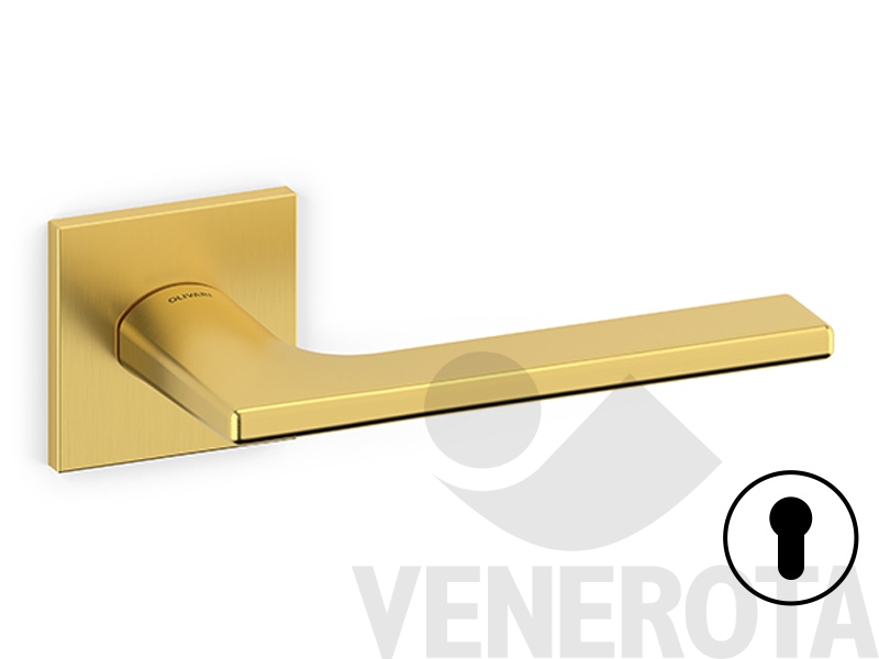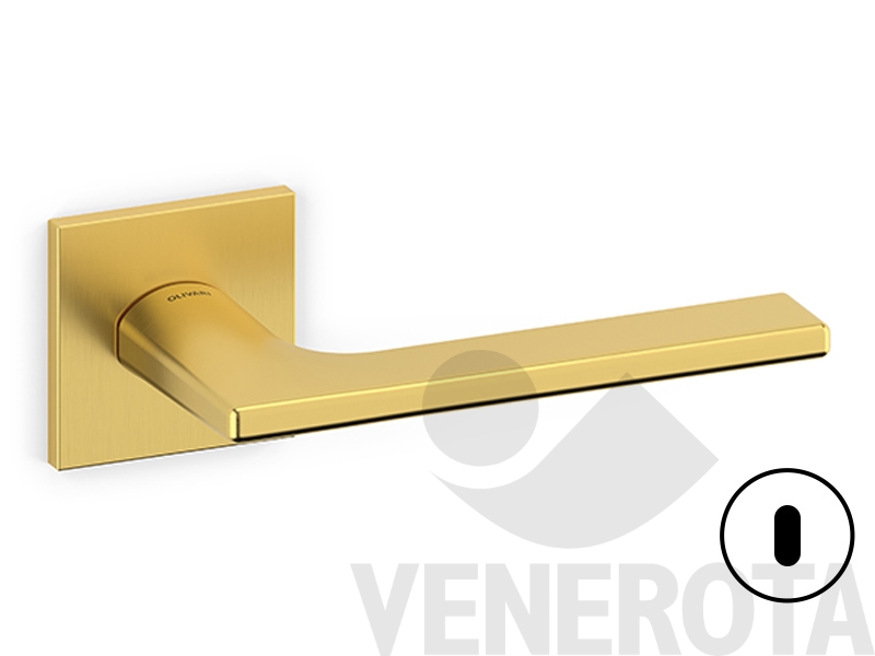 Maniglia Lotus Q per porta Olivari con rosetta e bocchetta stretta in ottone.