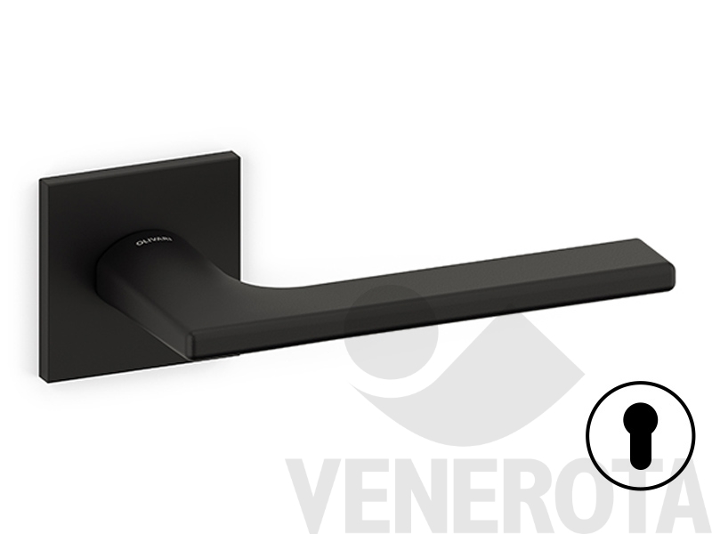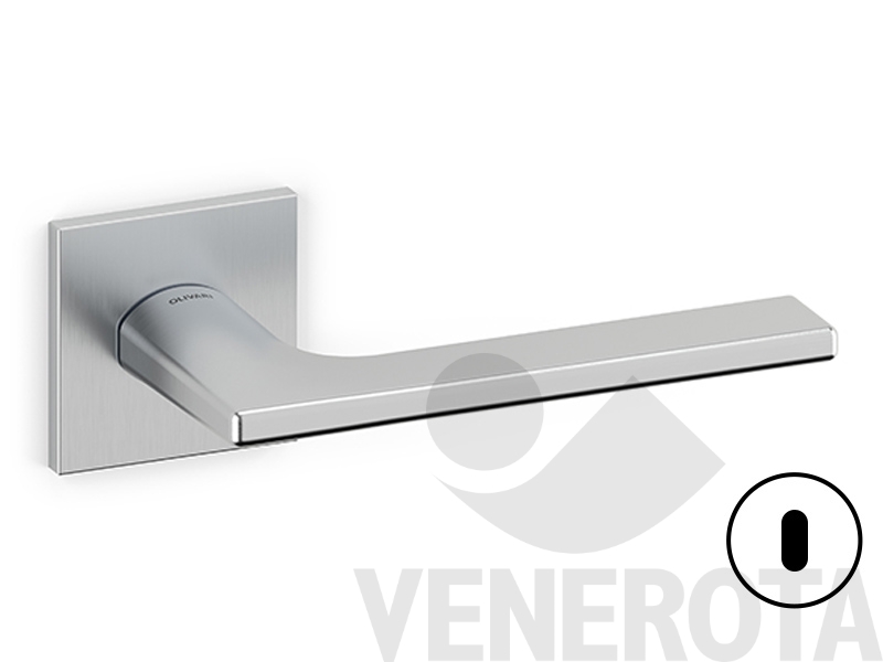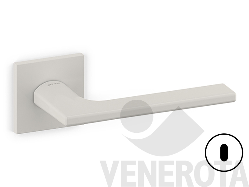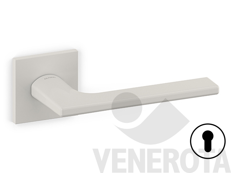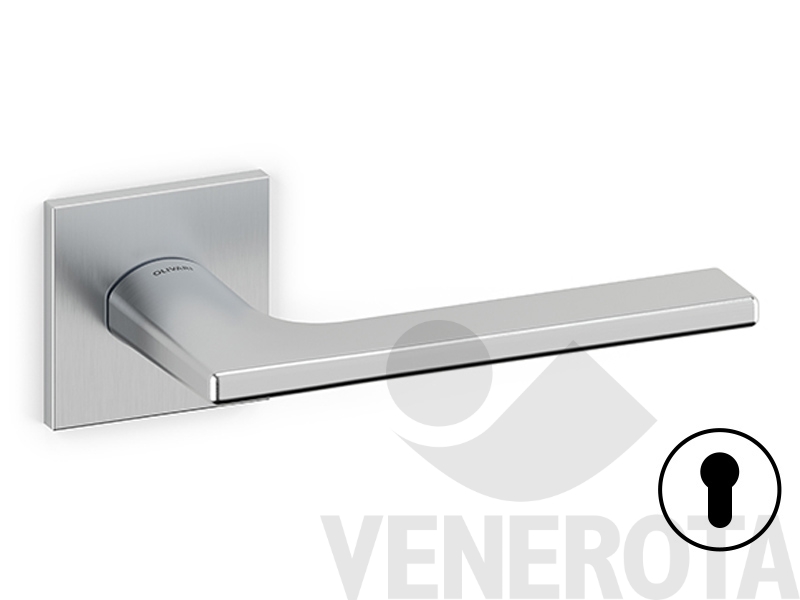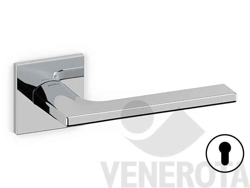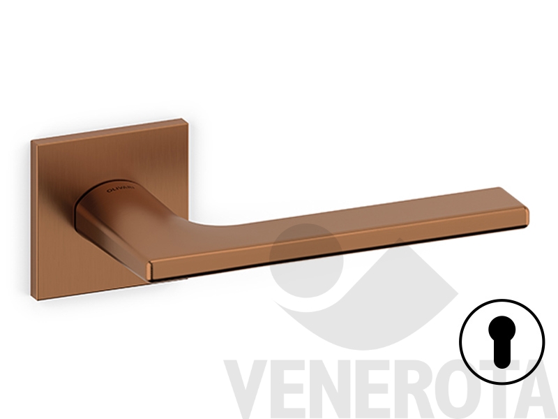 Maniglia Lotus Q per porta Olivari con rosetta e bocchetta stretta in ottone.