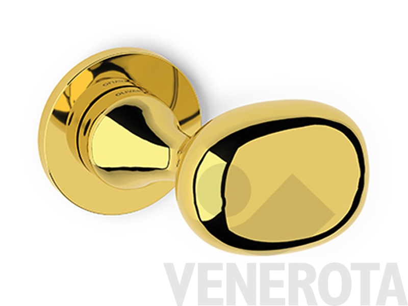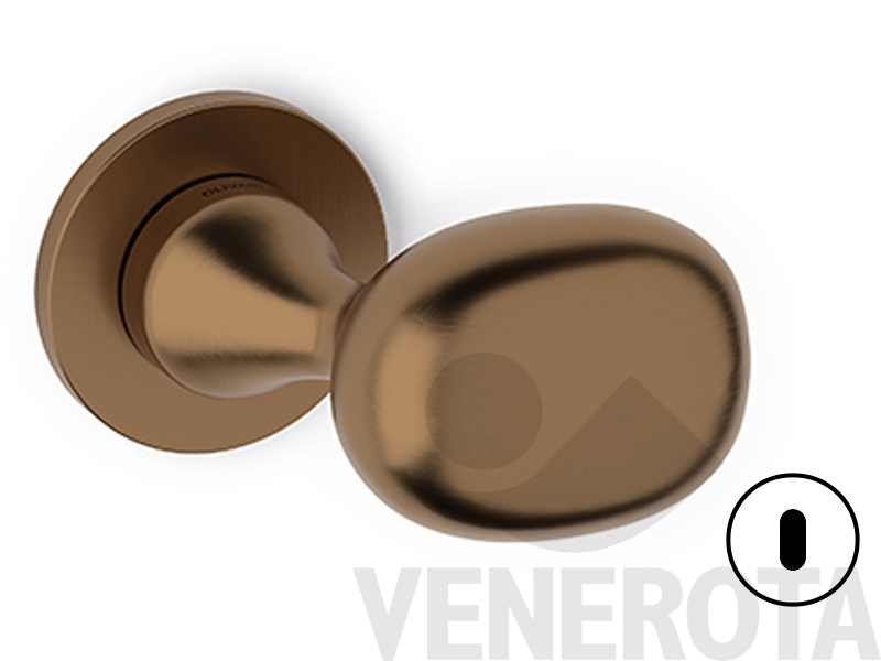 Maniglia Melanzana per porta Olivari con rosetta e bocchetta tonda bassa in ottone.