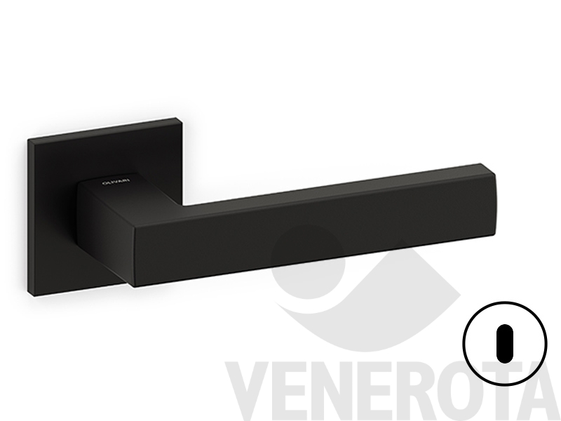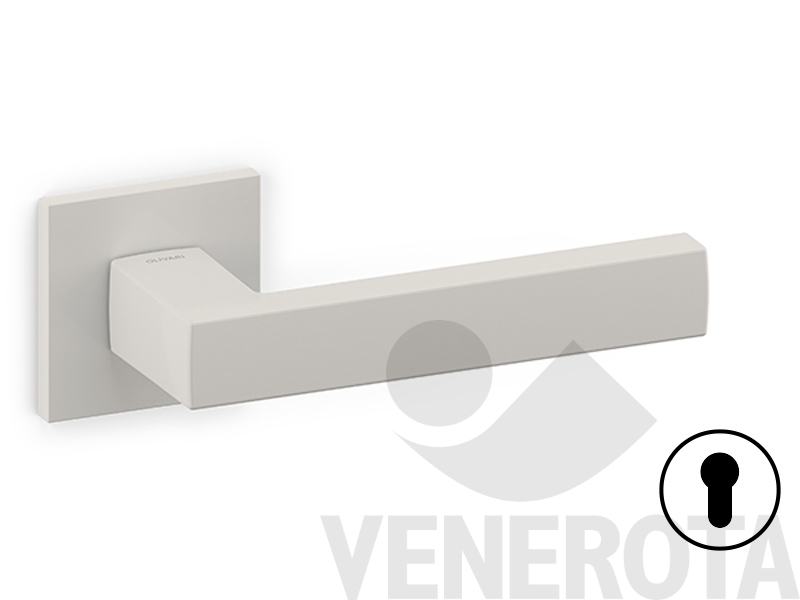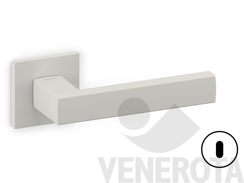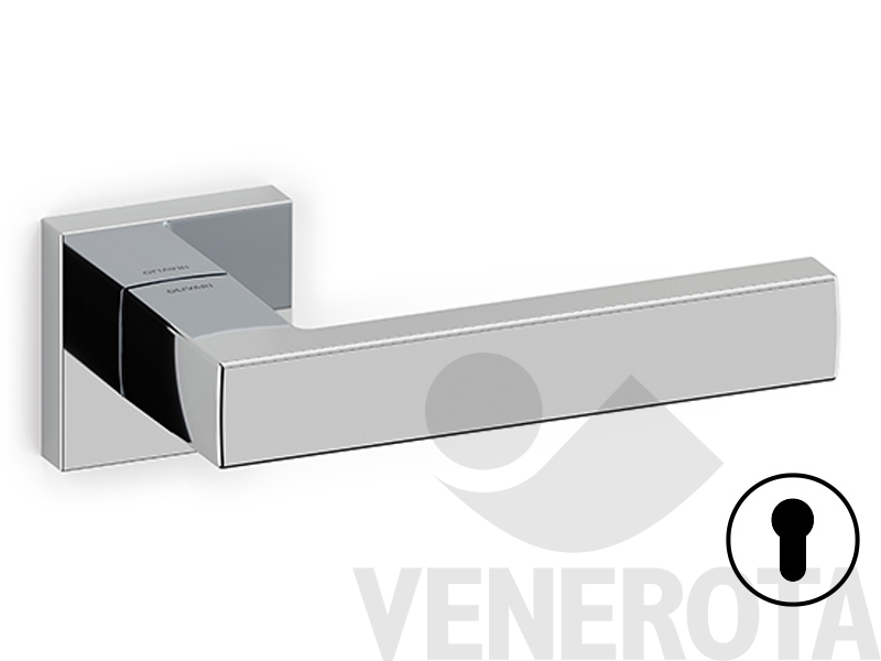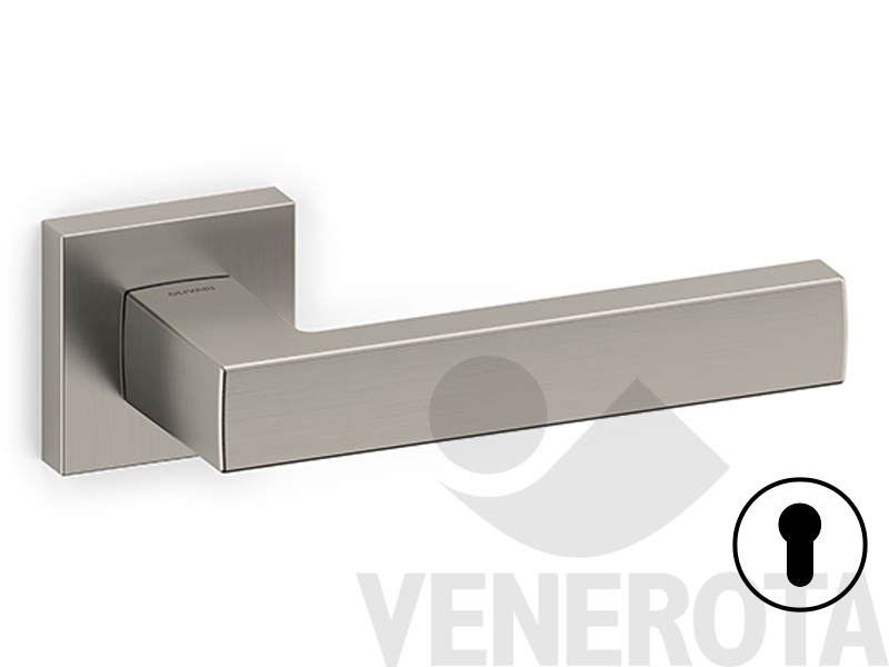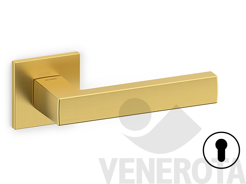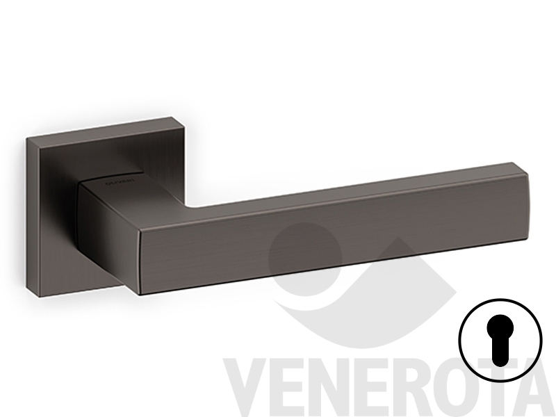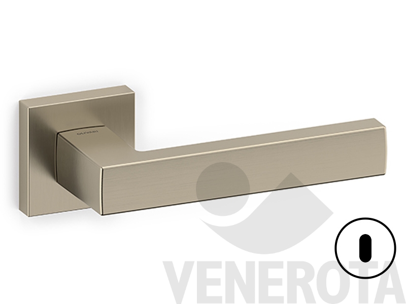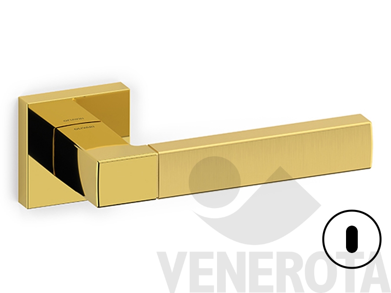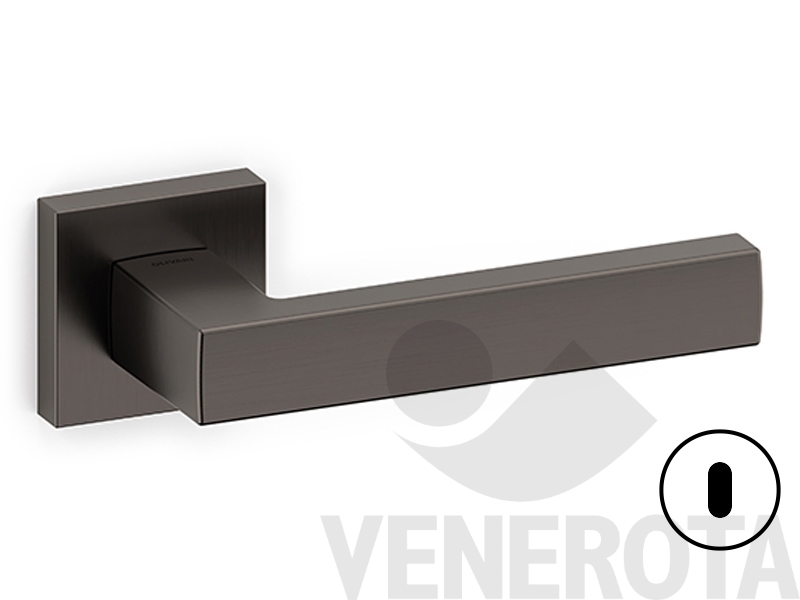 Maniglia Zelda per porta Colombo Design con rosetta e bocchetta quadra in ottone.