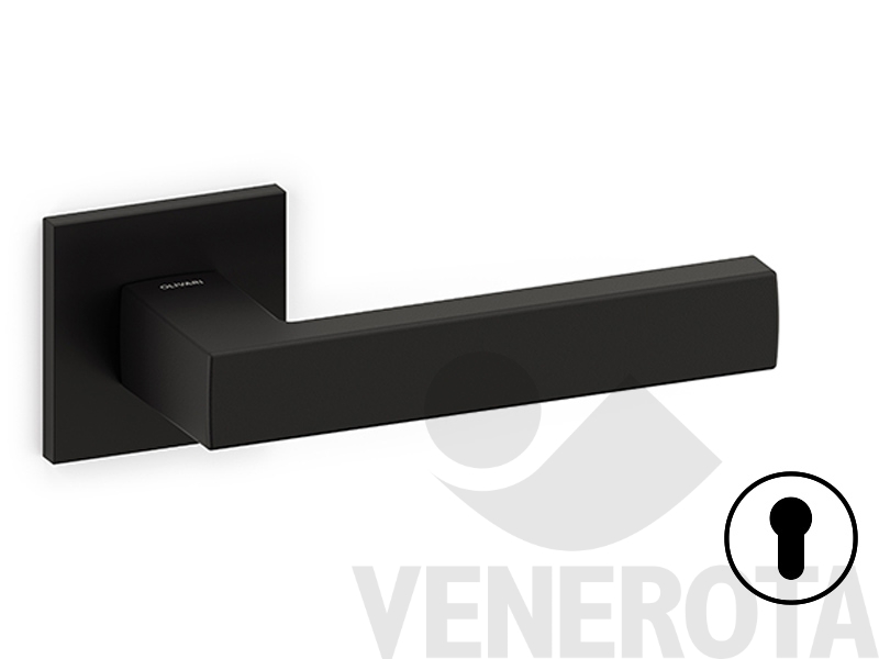 Maniglia Dallas per porta Hoppe con rosetta e bocchetta quadra in ottone.