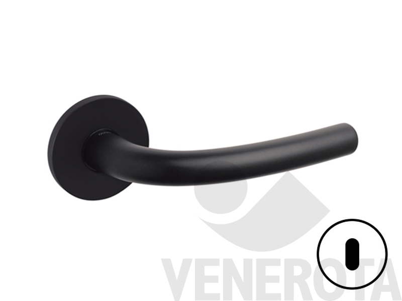 Maniglia Tizianella F per porta Olivari con rosetta e bocchetta tonda in ottone.