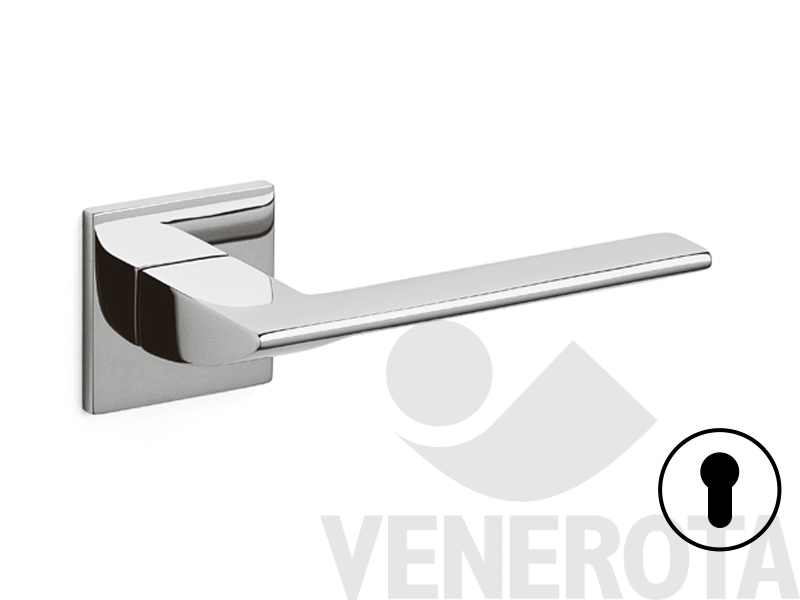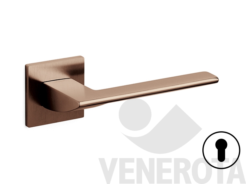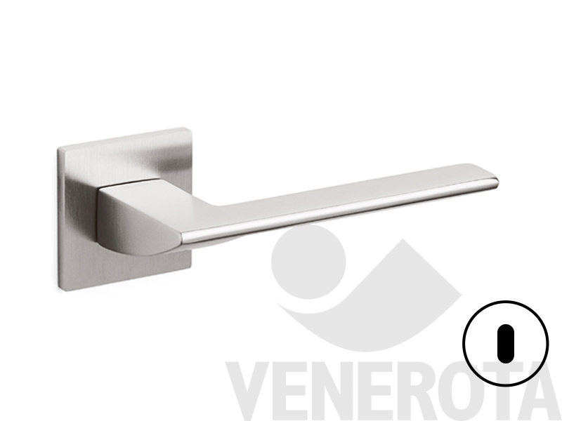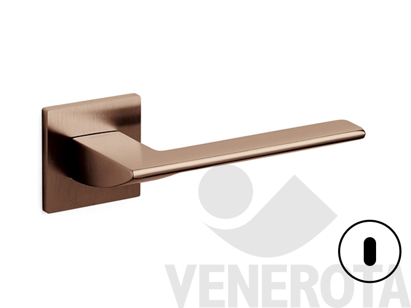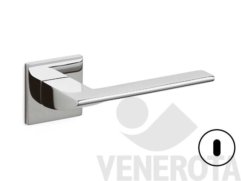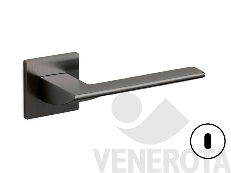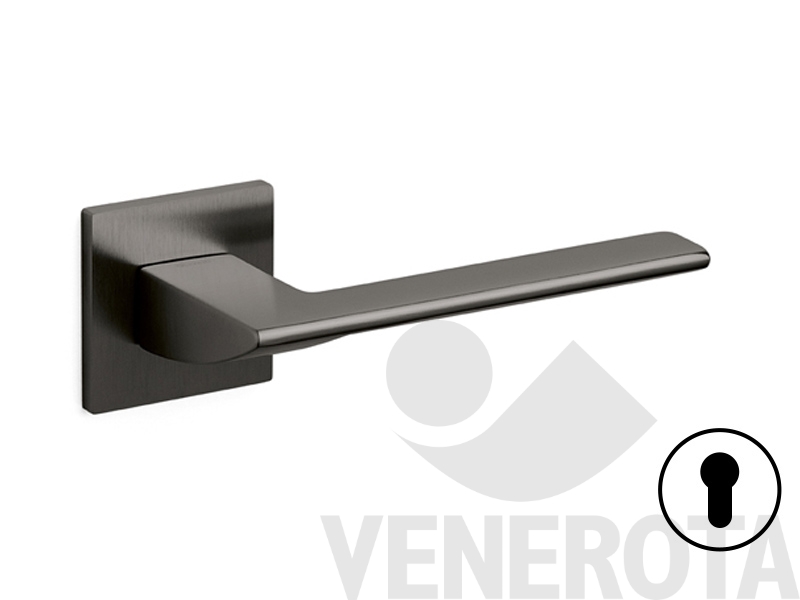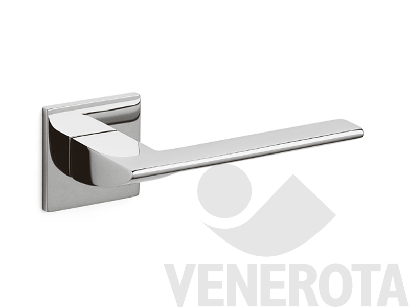 Maniglia Zelda per porta Colombo Design con rosetta e bocchetta quadra in ottone.