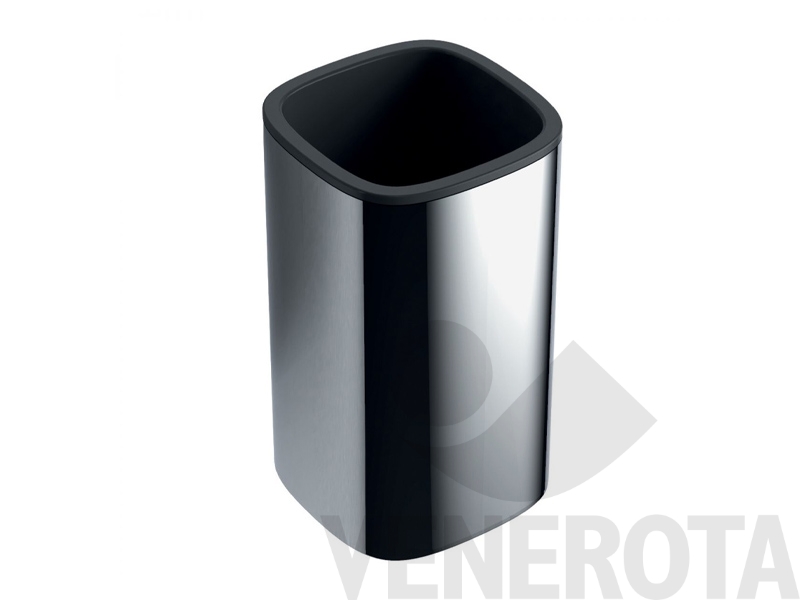 Porta bicchiere da appoggio con contenitore e base in ottone cromato, ideale per organizzare lo spazio lavabo con praticità.