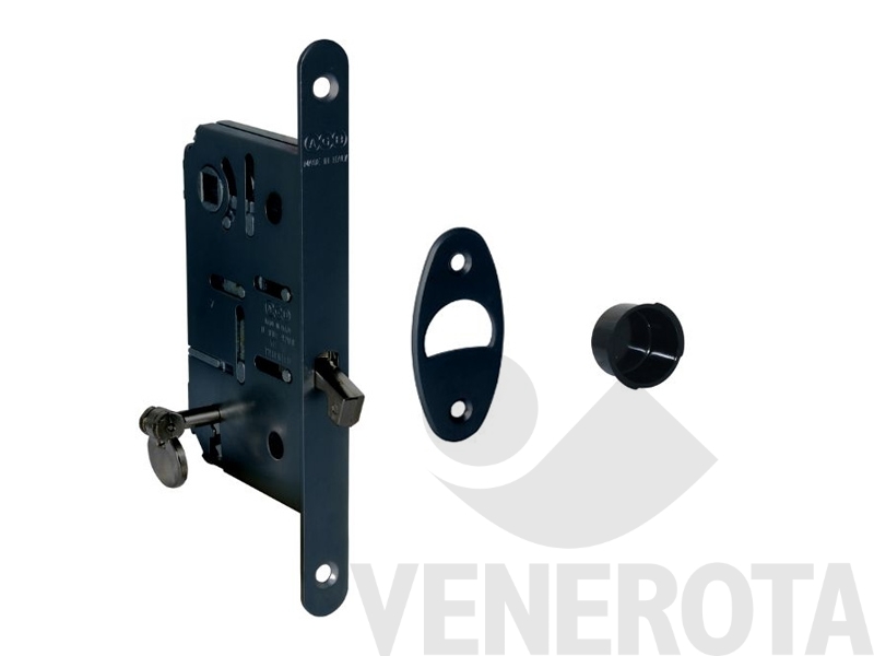 Serratura a gancio ad incasso AGB Scivola T Class per porte scorrevoli, con bordo tondo e frontale da 18 mm. Elegante e funzionale, assicura una chiusura fluida, sicura e silenziosa.