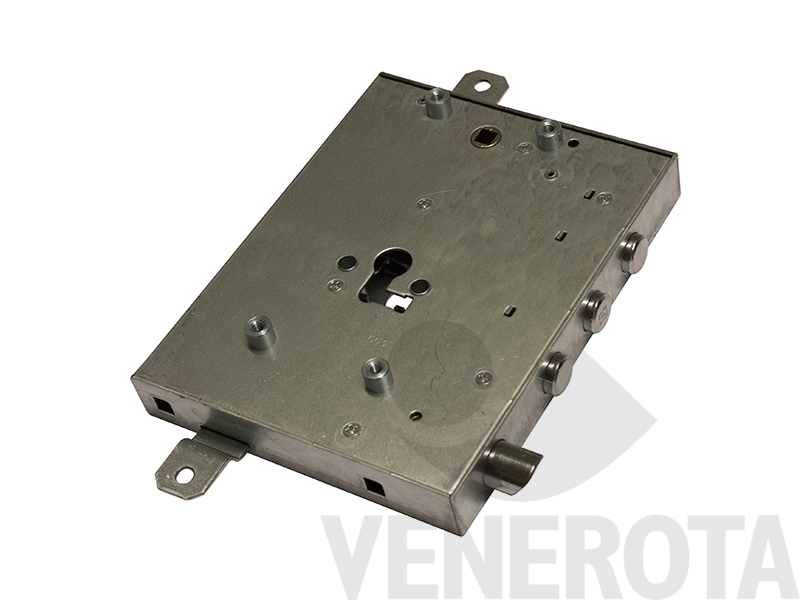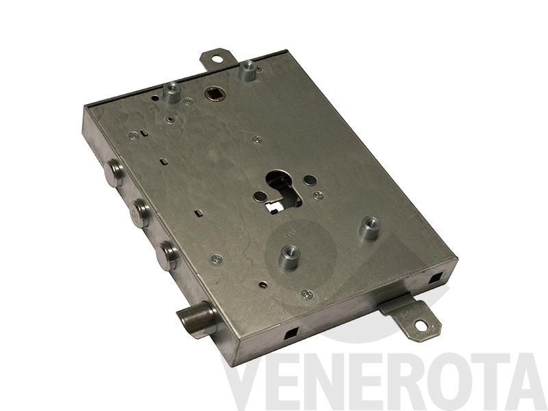 Serratura triplice ad applicare a cilindro con ghigliottina e perni filettati per porte blindate Gardesa Mottura