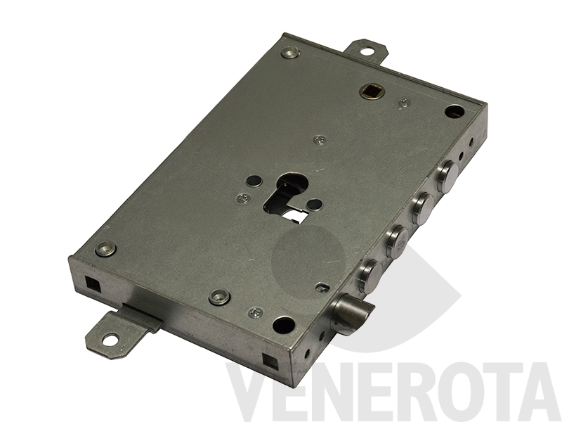 Serratura triplice ad applicare Securemme per porte blindate, senza cuore di chiusura, predisposta per doppia mappa o cilindro europeo.