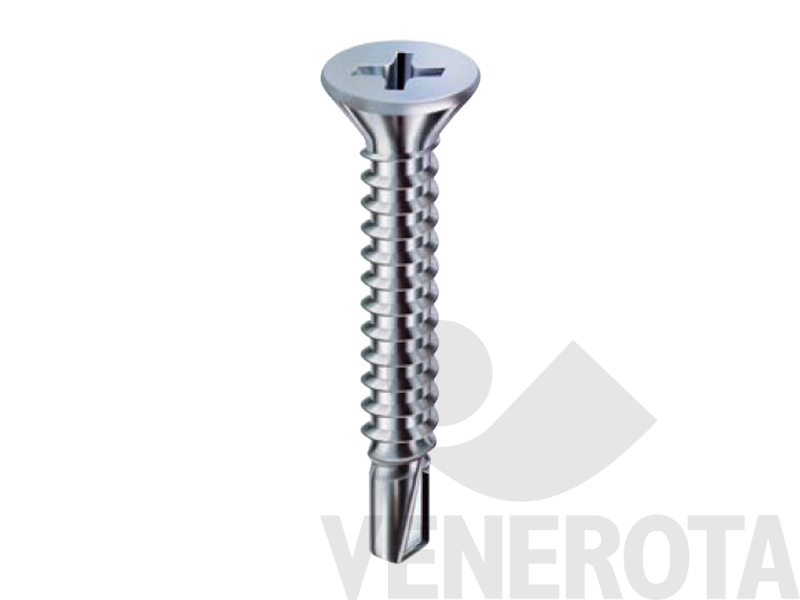 Viti autoforanti con impronta Phillips e filetto parziale, utilizzate per forare il metallo.
