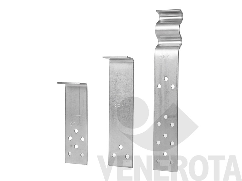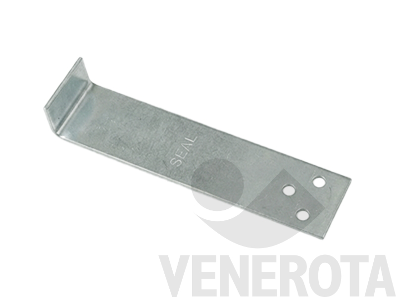 Zanca a piastrina Valsecchi progettata per ancorare saldamente stipiti di porte o finestre su murature. Realizzata in acciaio resistente, è dotata di più fori che assicurano una distribuzione uniforme della forza, garantendo stabilità e facilità di montaggio in ambienti edili.